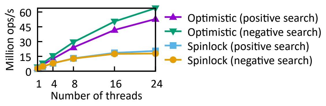 잠금 없는(Lock-free) 설계는 읽기 전용 탐색 작업에 대한 PM 쓰기를 방지할 수 있지만 올바르게 수행하기가 매우 어렵습니다.