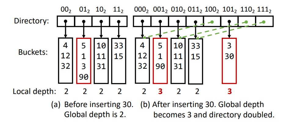 런타임 시 필요에 따라 확장(grow) 및 축소(shrink)할 수 있는 동적 해시 테이블은 데이터베이스 시스템 및