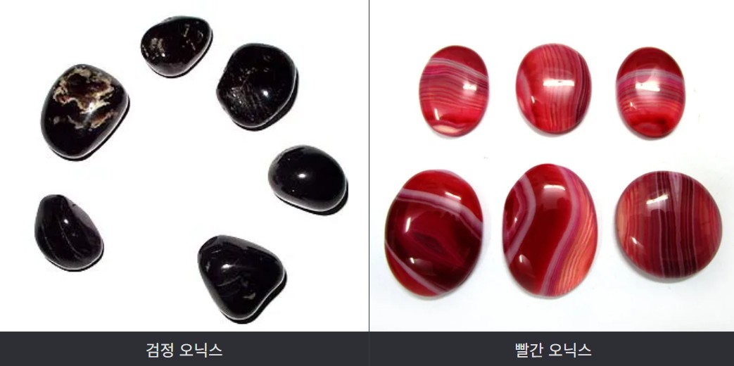 Onyx(오닉스) 이름 설명: 줄마노(瑪瑙) 또는 줄무늬가 있는 석회암. 그리스어로 '손톱', '줄무늬'를 의미하는 onyx에서 유래했다.