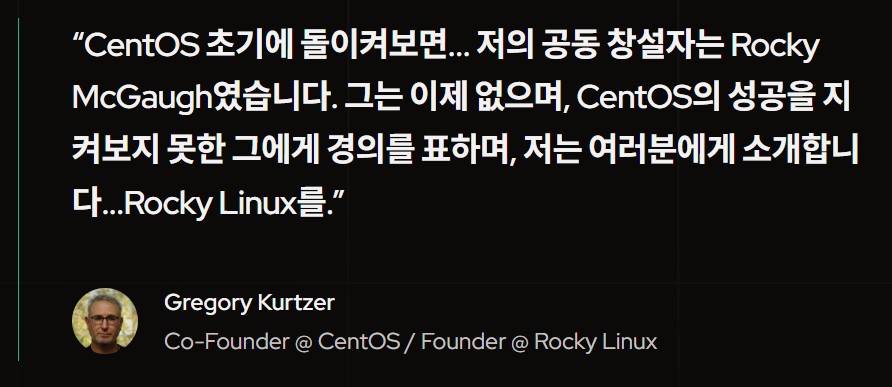 CentOS 공동 설립자인 "Rocky McGaugh"를 기리는 의미에서 "Rocky Linux"라고 이름 지음.